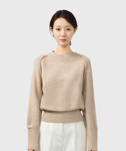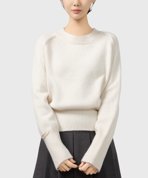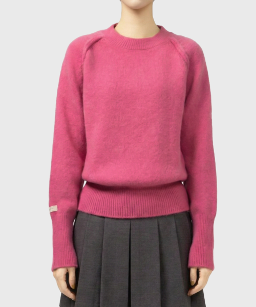 울 100% 라운드넥 라그란 7부소매 니트_핑크