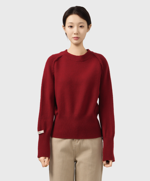 울 100% 라운드넥 라그란 7부소매 니트_오렌지