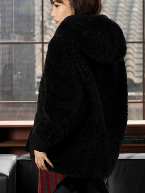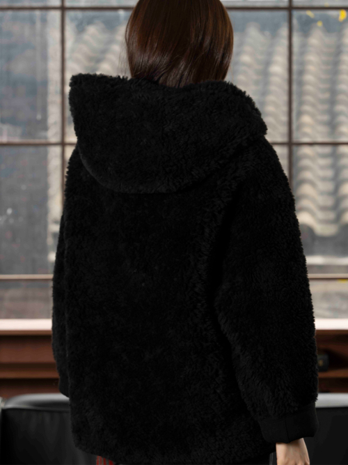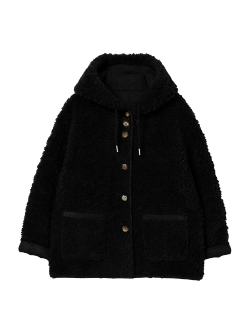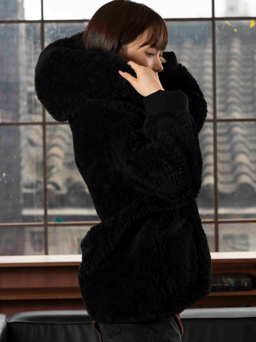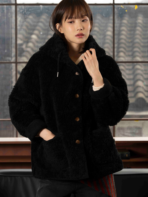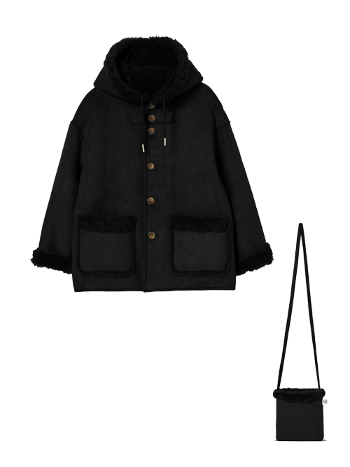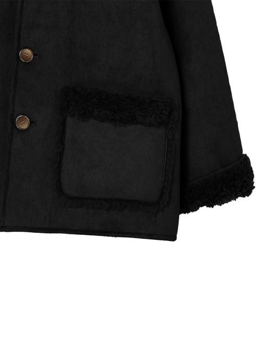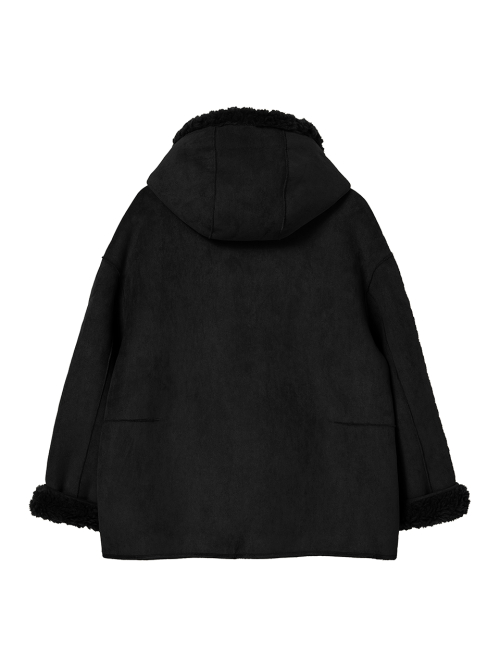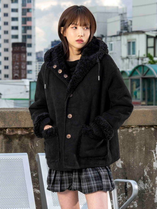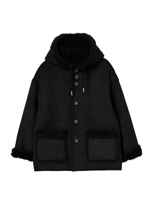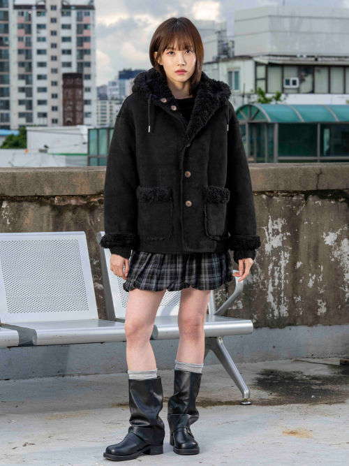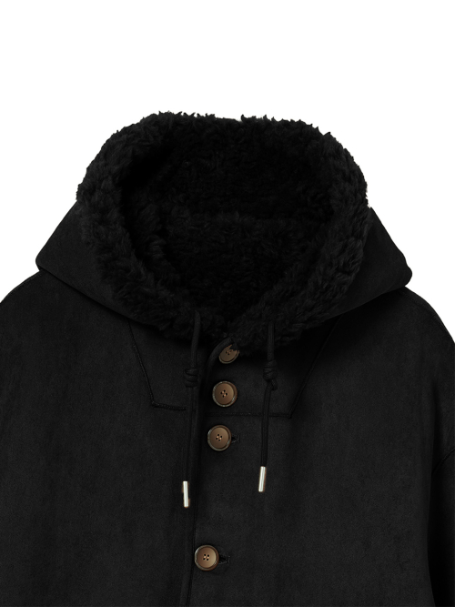 FAUX 스웨이드 리버시블 후드 무스탕 [블랙]