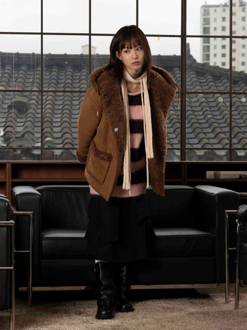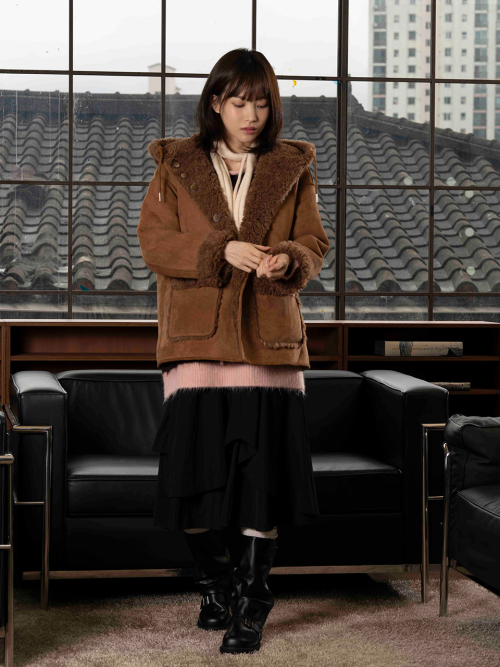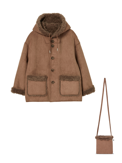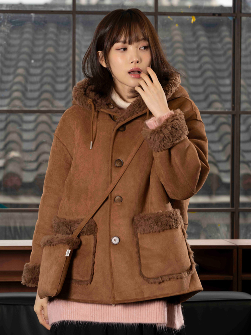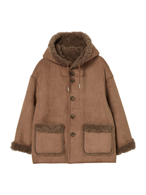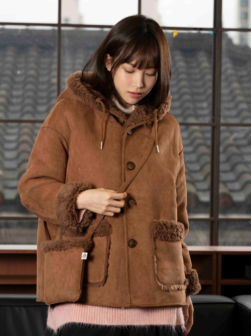 Faux 스웨이드 리버서블 후드 무스탕 (자켓)