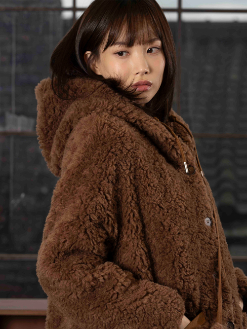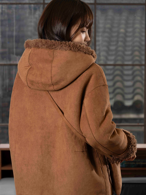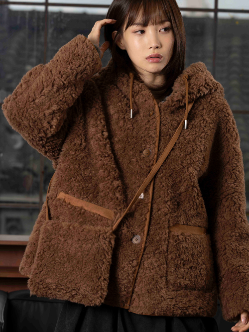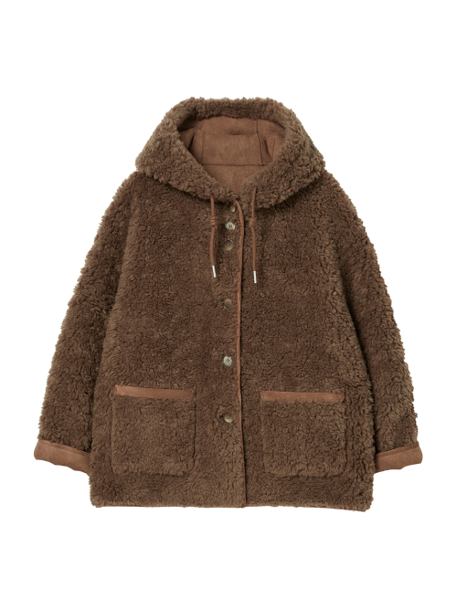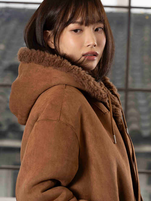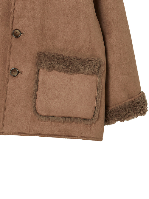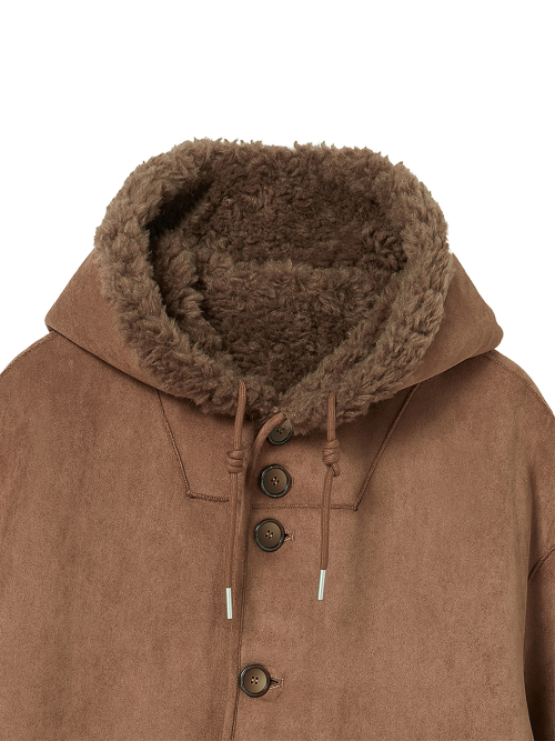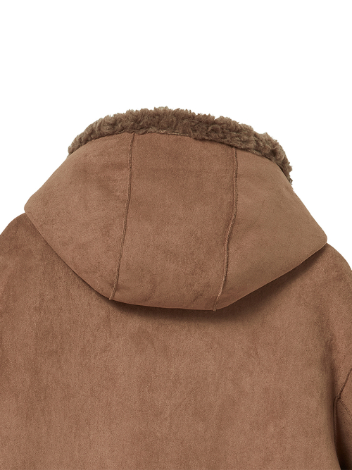 FAUX 스웨이드 리버시블 후드 무스탕 [다크 베이지]
