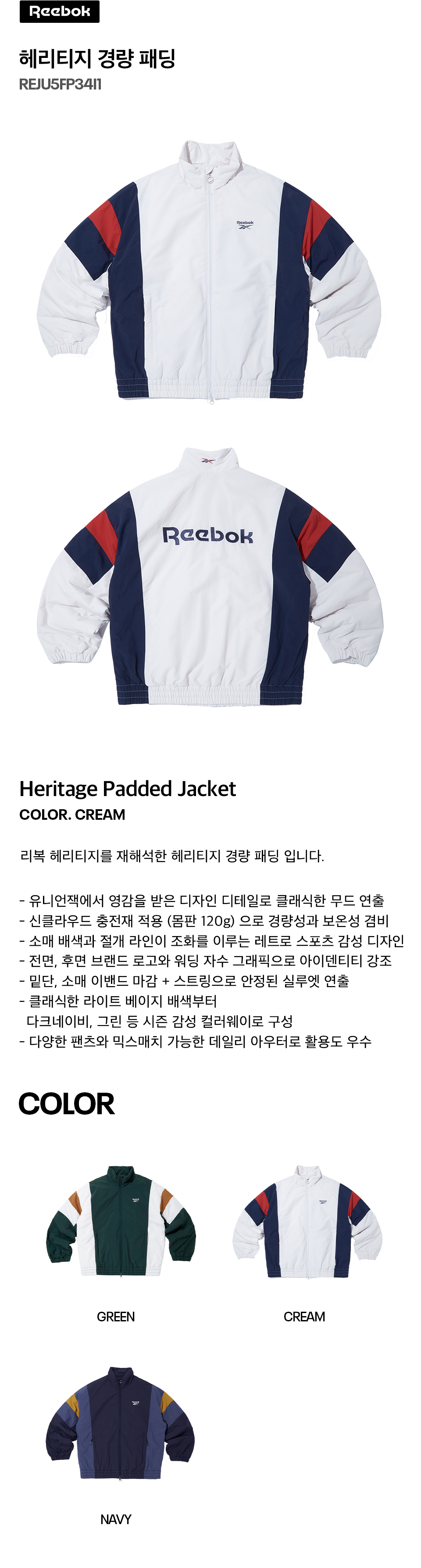 헤리티지 경량패딩 - 크림