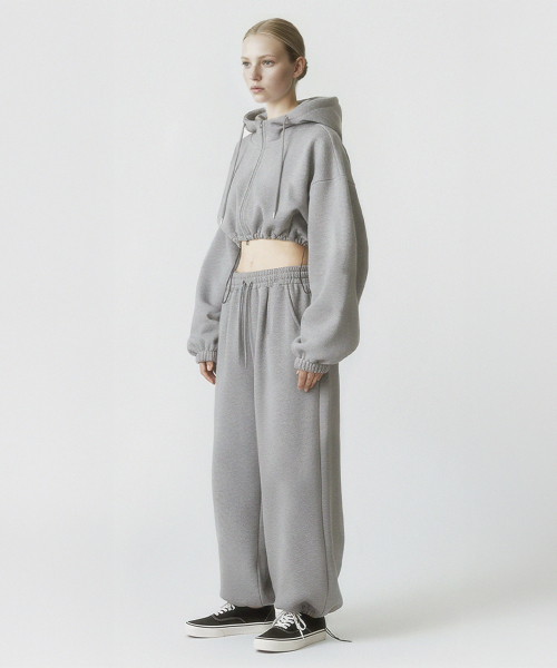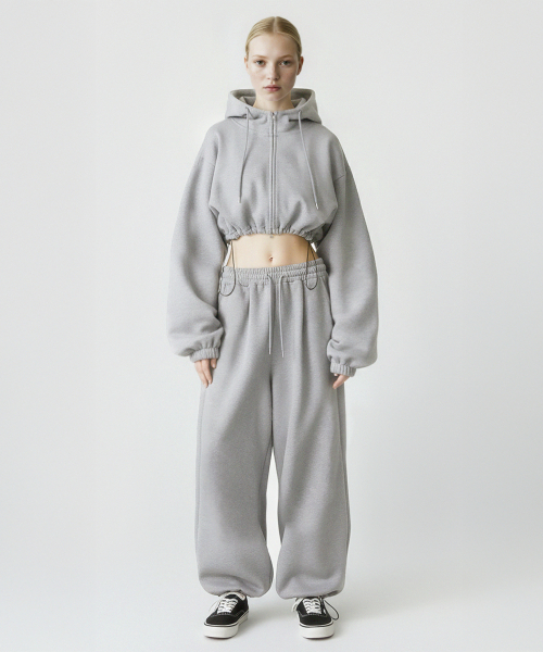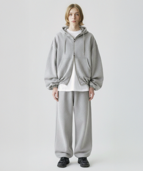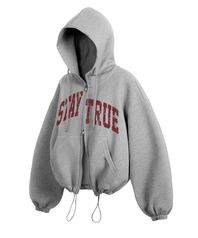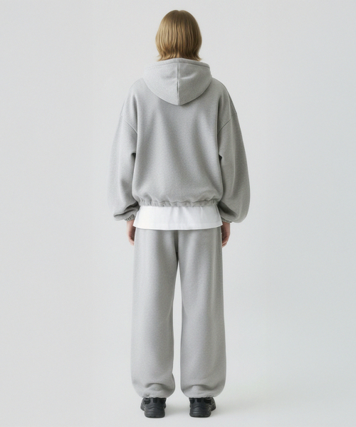 아치 스테이 버건디 스트링 오버핏 투웨이 후드집업 - 멜란지