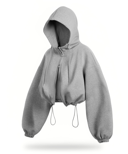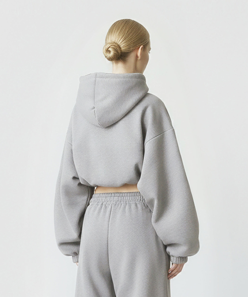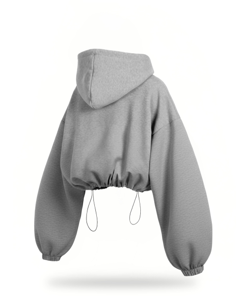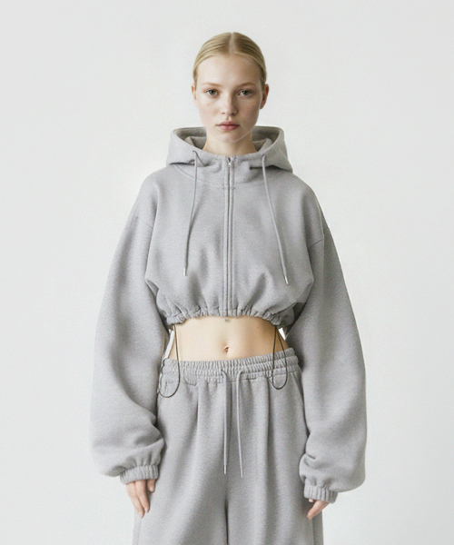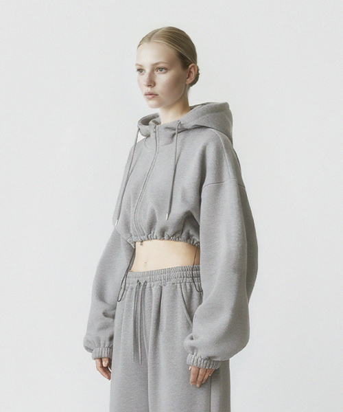 스트링 오버핏 크롭 투웨이 후드집업 - 멜란지