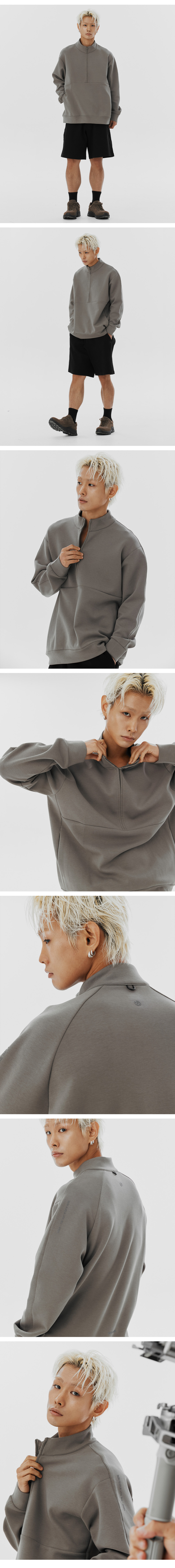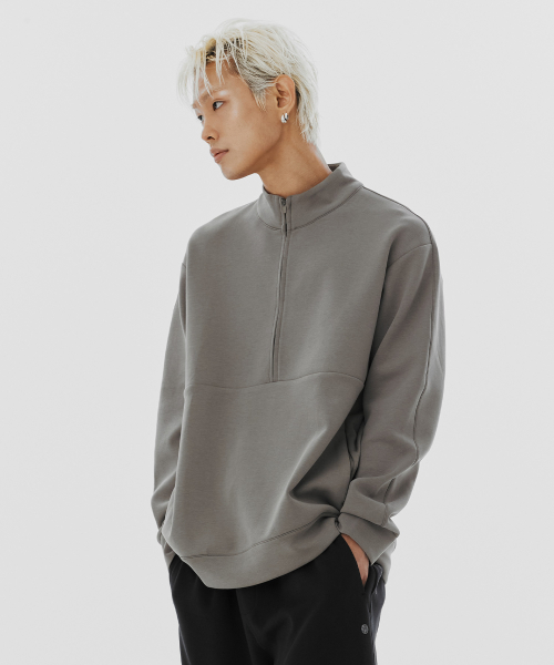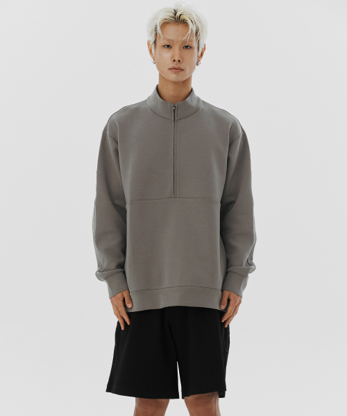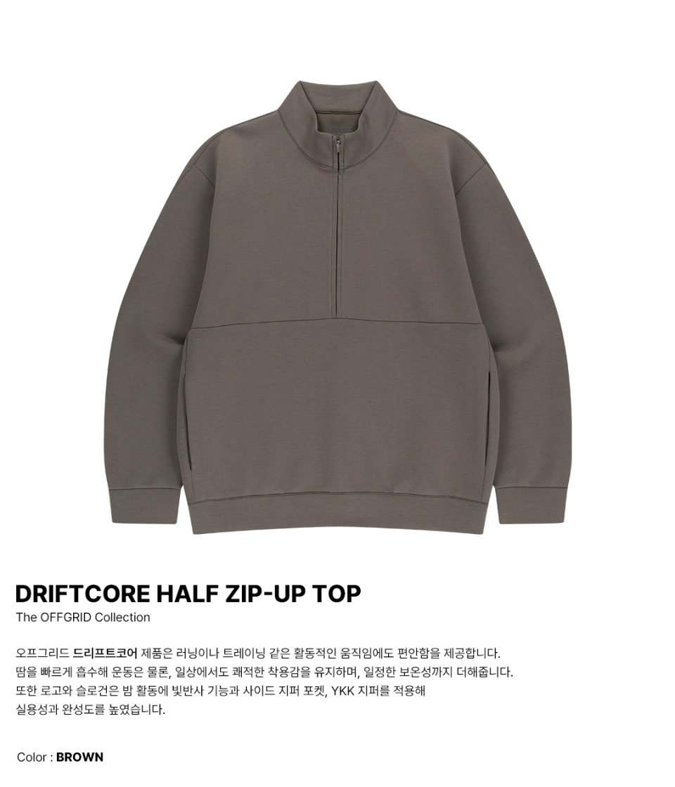 드리프트코어 유니 하프집업 탑-브라운