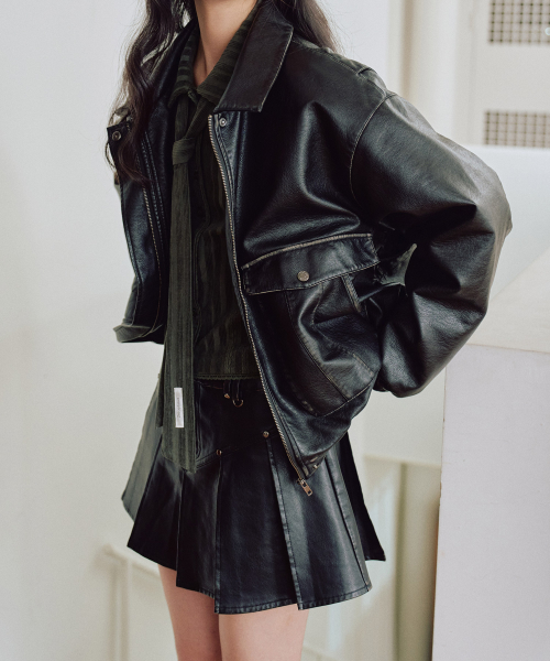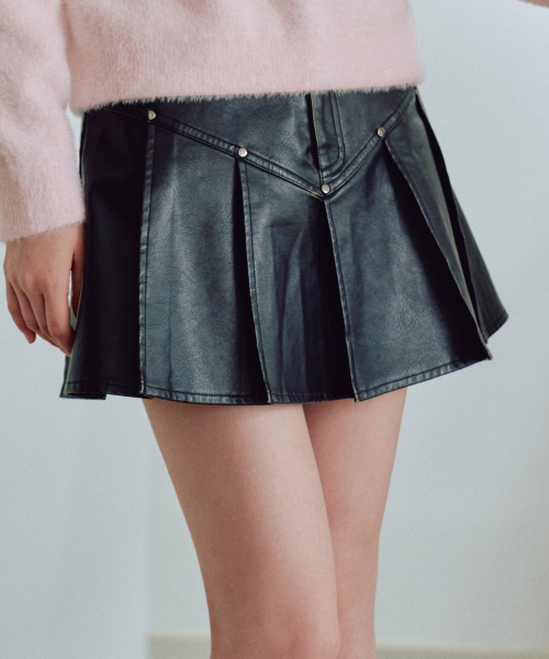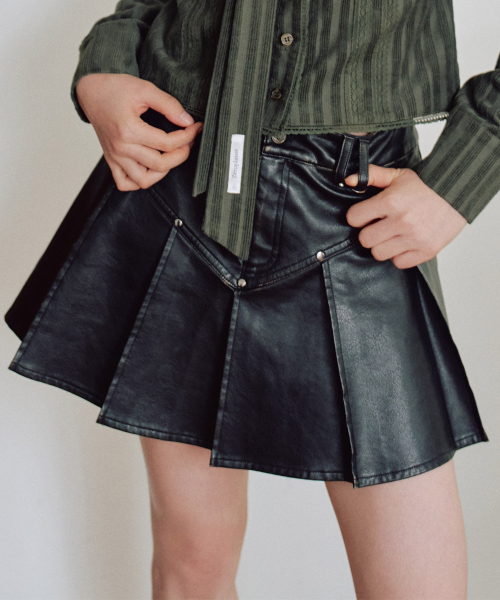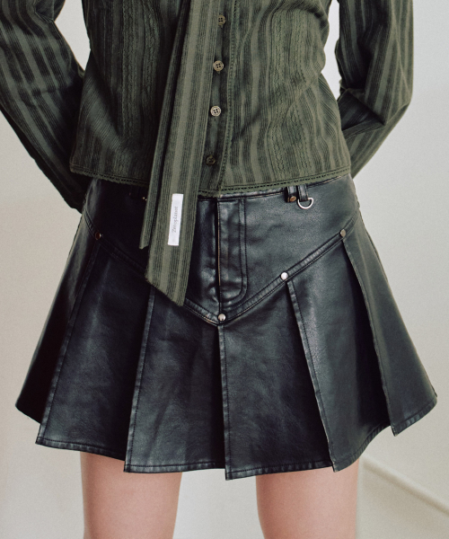 클레어 비건 레더 플리츠 스커트 [BLACK]