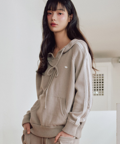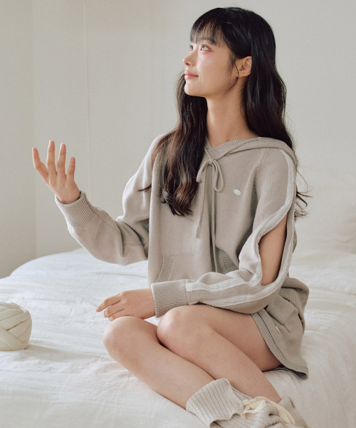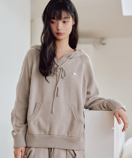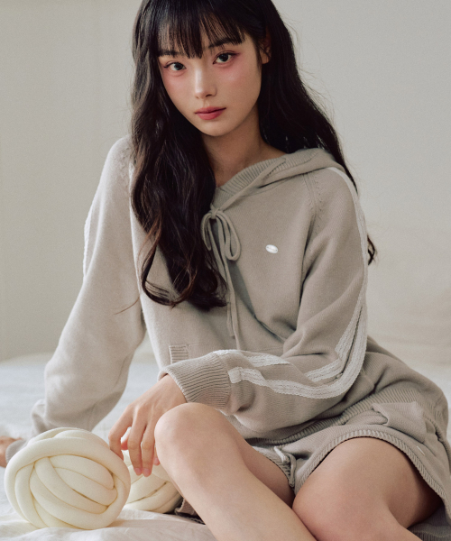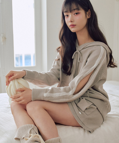 에바 버튼 레이어드 니트 후드 [OATMEAL]