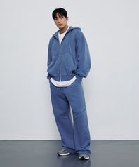 리벳 슬래시 피그먼트 후드 집업 + 스웻팬츠 블루