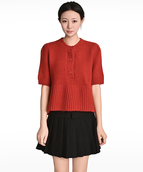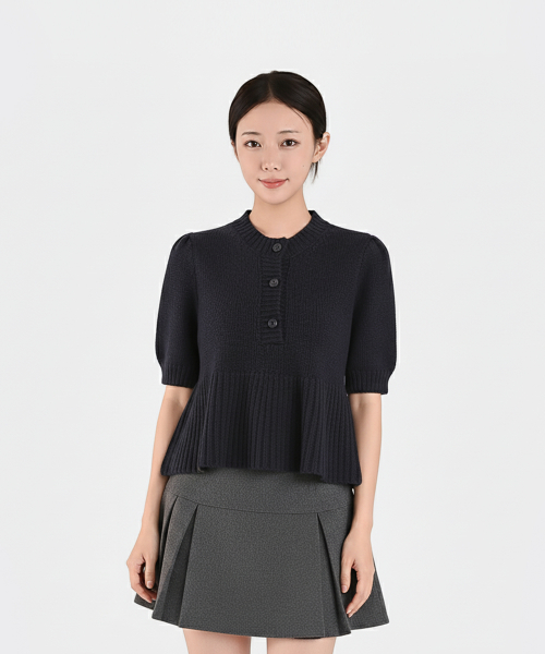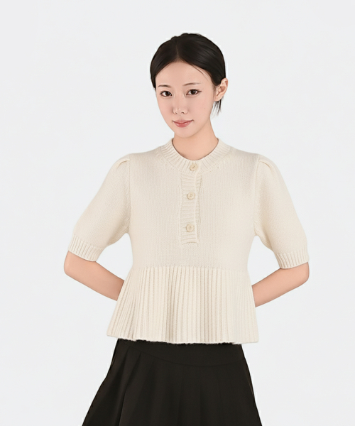 프린세스 퍼프소매 A라인 반팔니트_아이보리