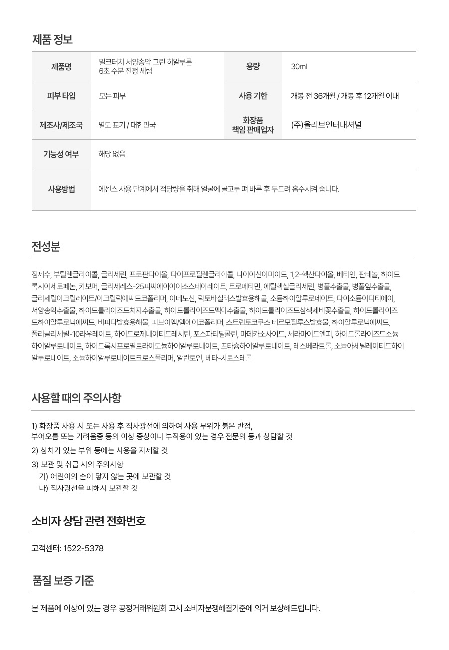 서양송악 그린히알루론 6초 수분 진정 세럼 30ml