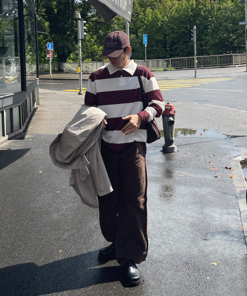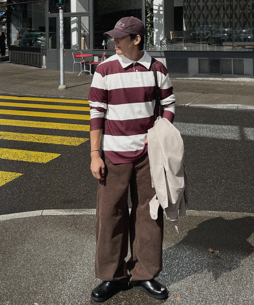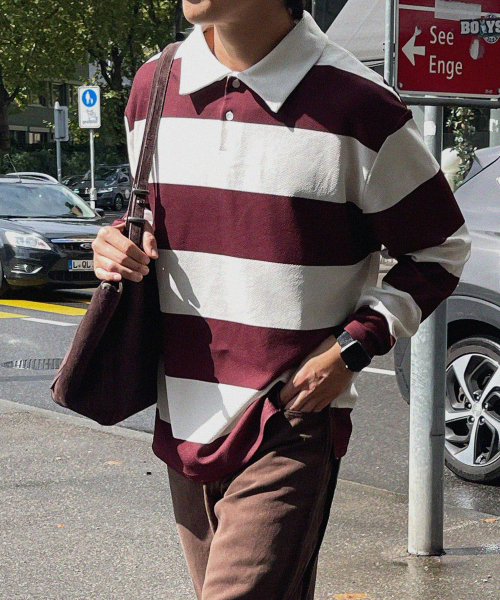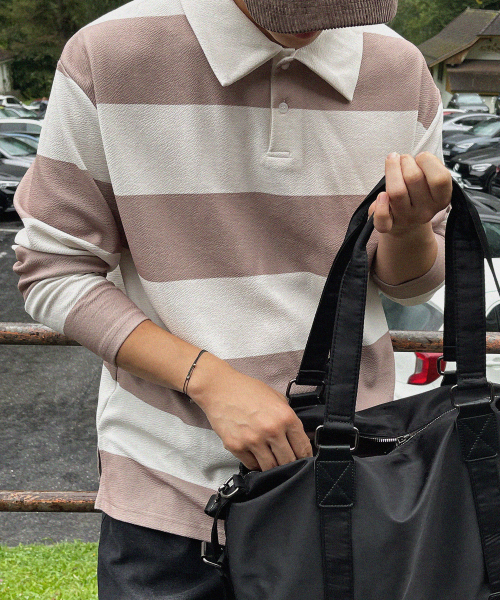 모노 스트라이프 럭비 카라 긴팔티 [XL-8XL]