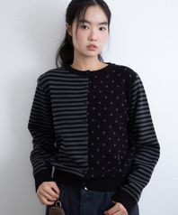 DOT STRIPE KNIT CARDIGAN_BLACK(IK2FFFK642A)