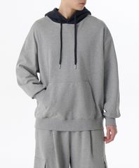 오버사이즈 투 톤 후디드 스웨트셔츠 [미디엄 그레이]