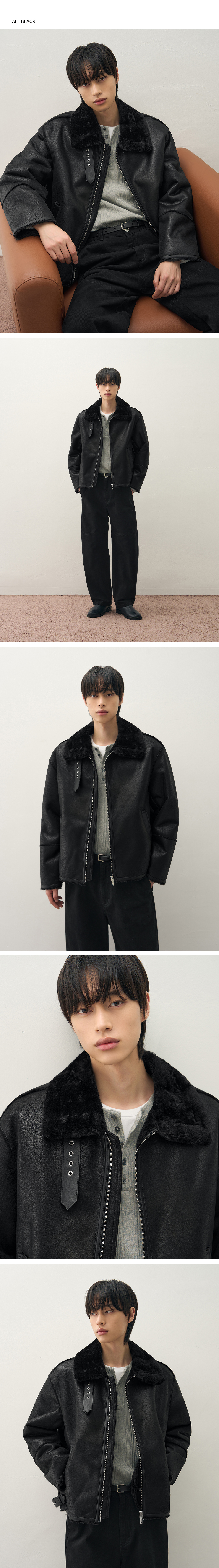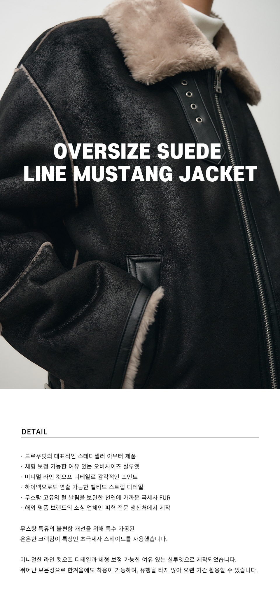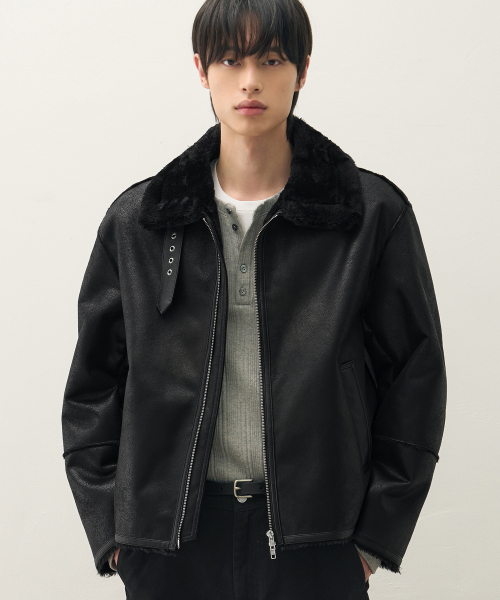 오버사이즈 스웨이드 라인 무스탕 자켓 [ALL BLACK]