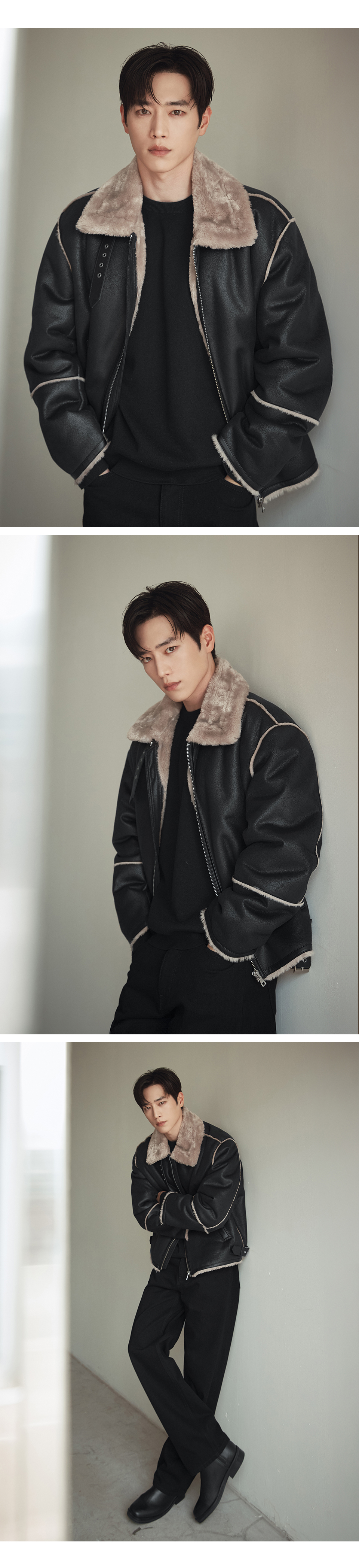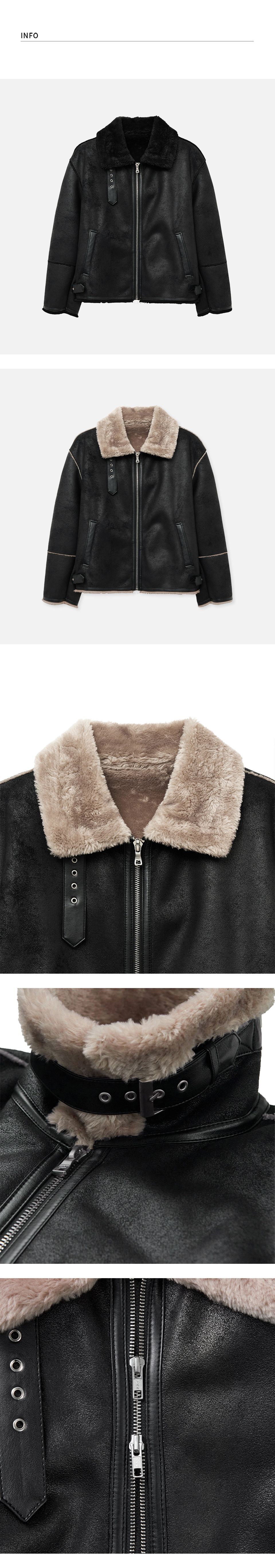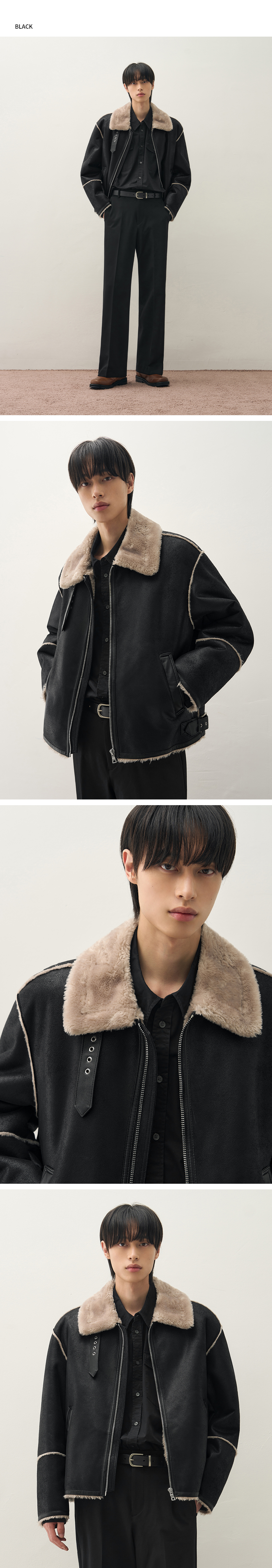 오버사이즈 스웨이드 라인 무스탕 자켓 [ALL BLACK]
