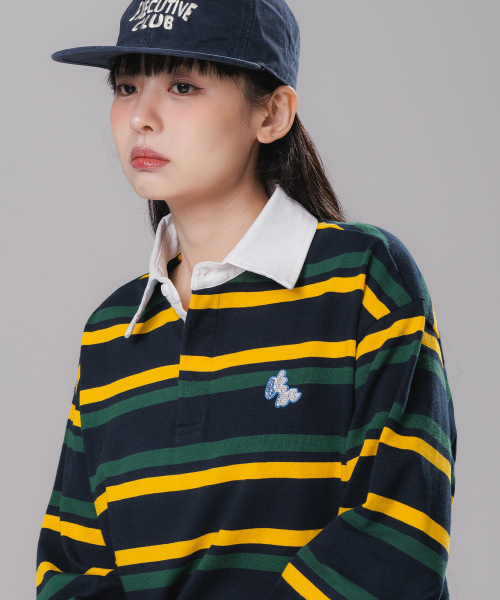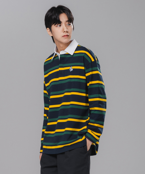멀티 스트라이프 럭비 카라 롱 슬리브 BK7828_네이비
