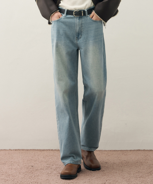유주얼 세미 와이드 데님 팬츠 [DUSTY BLUE]