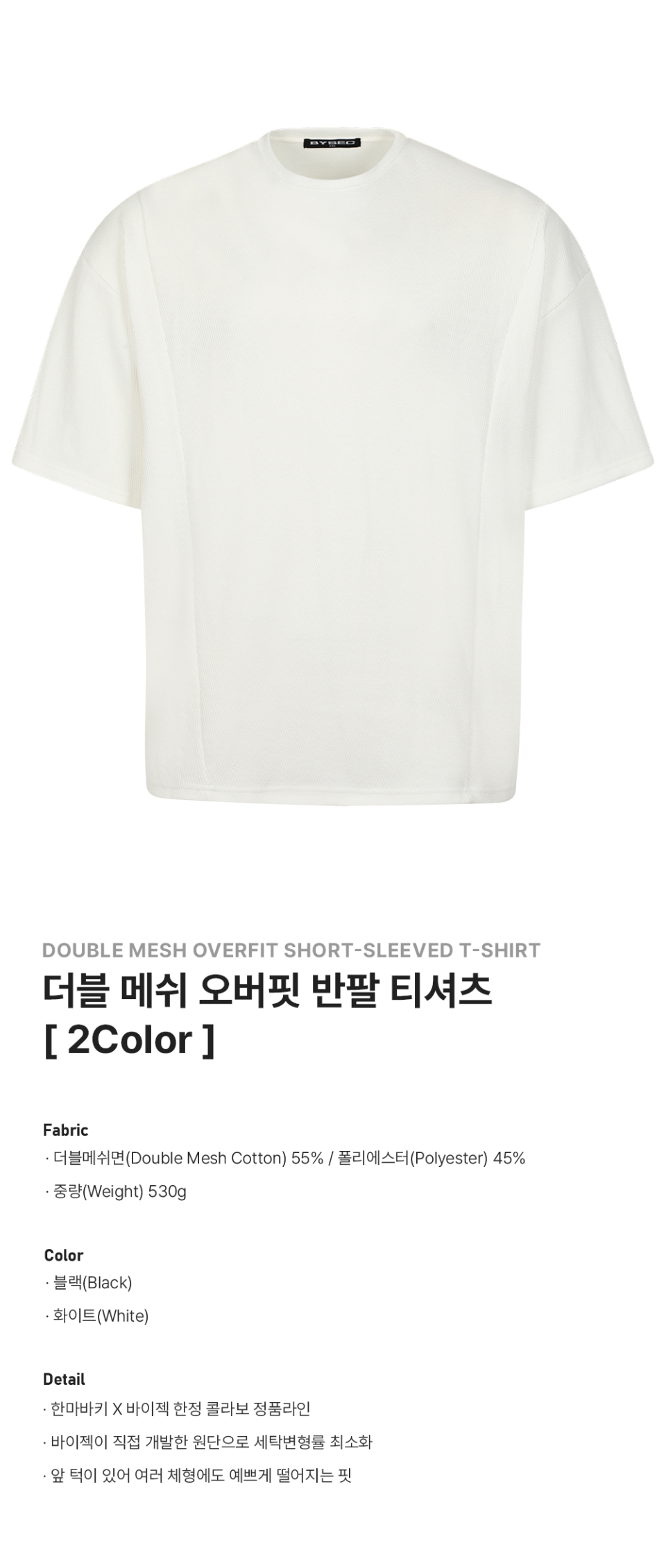 더블메쉬 오버핏 반팔티셔츠_2Color