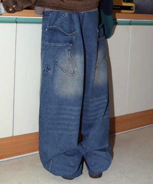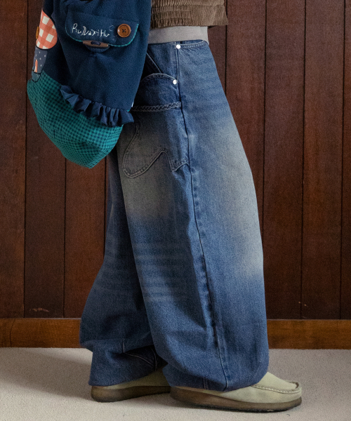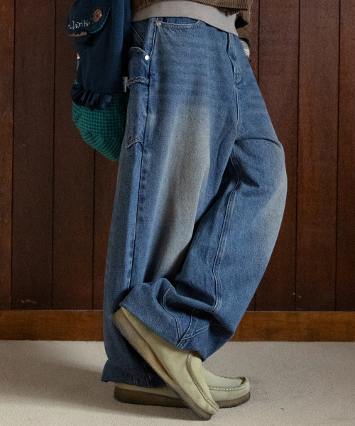 WXP064 카미 워싱 데님 벌룬 팬츠 (DEEP BLUE)