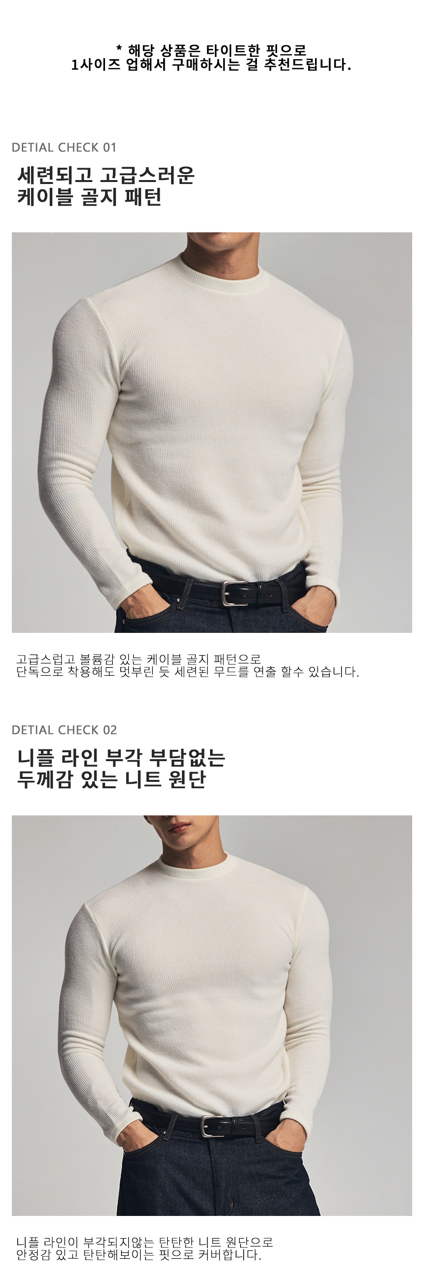 케이블 모크 머슬핏 니트티셔츠 그레이