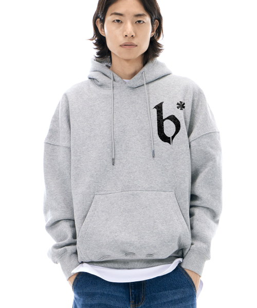 B로고 후드 그레이