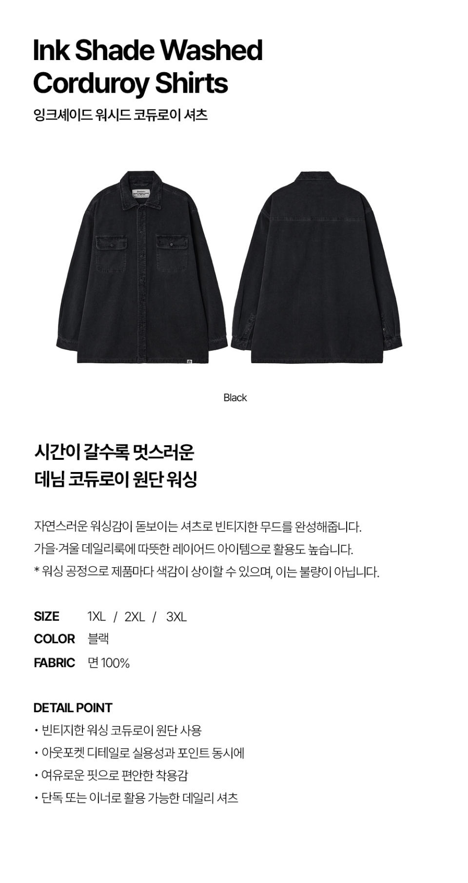 [빅사이즈]잉크셰이드 워시드 코듀로이 셔츠
