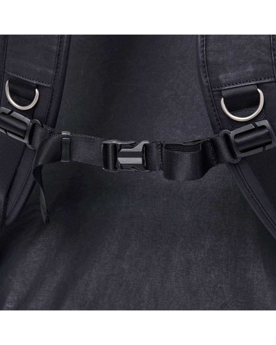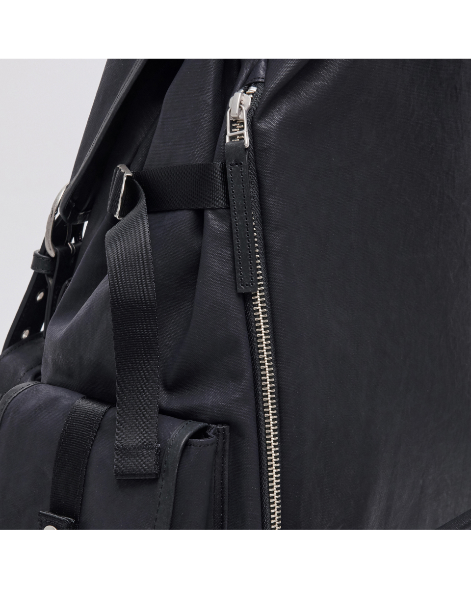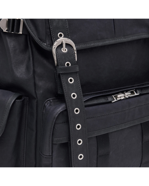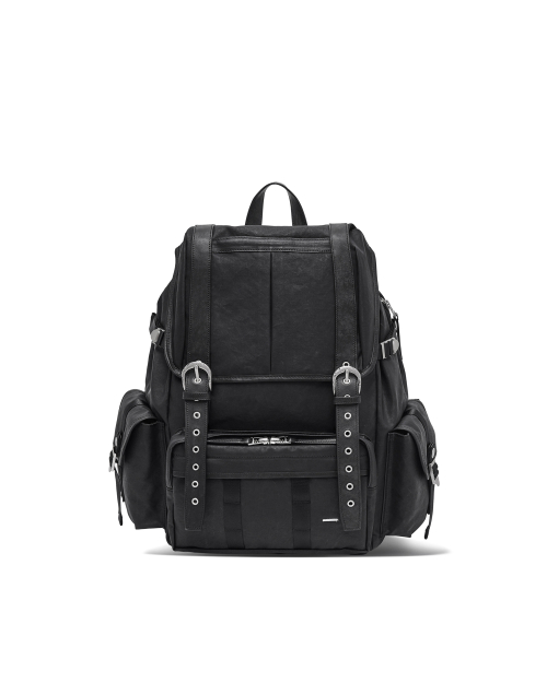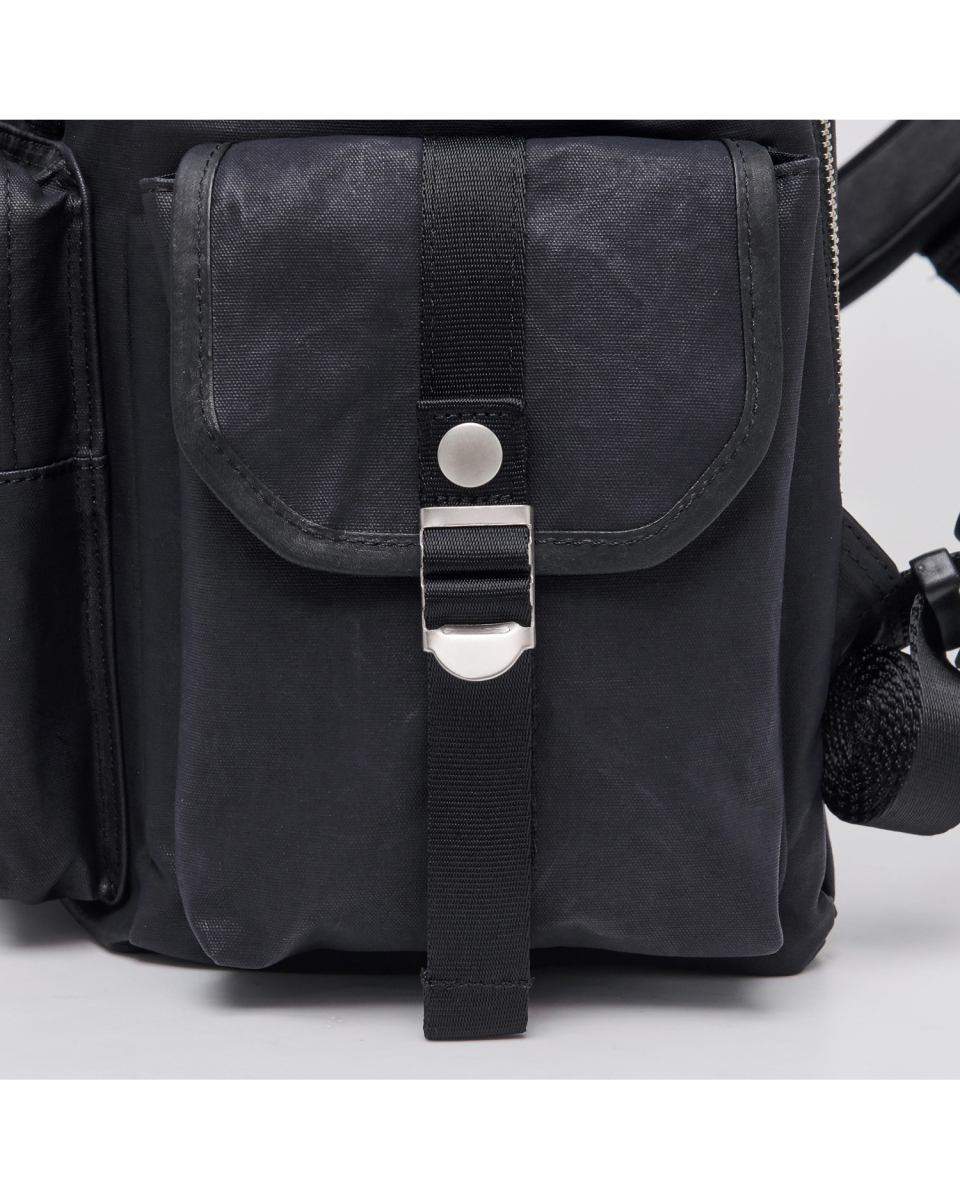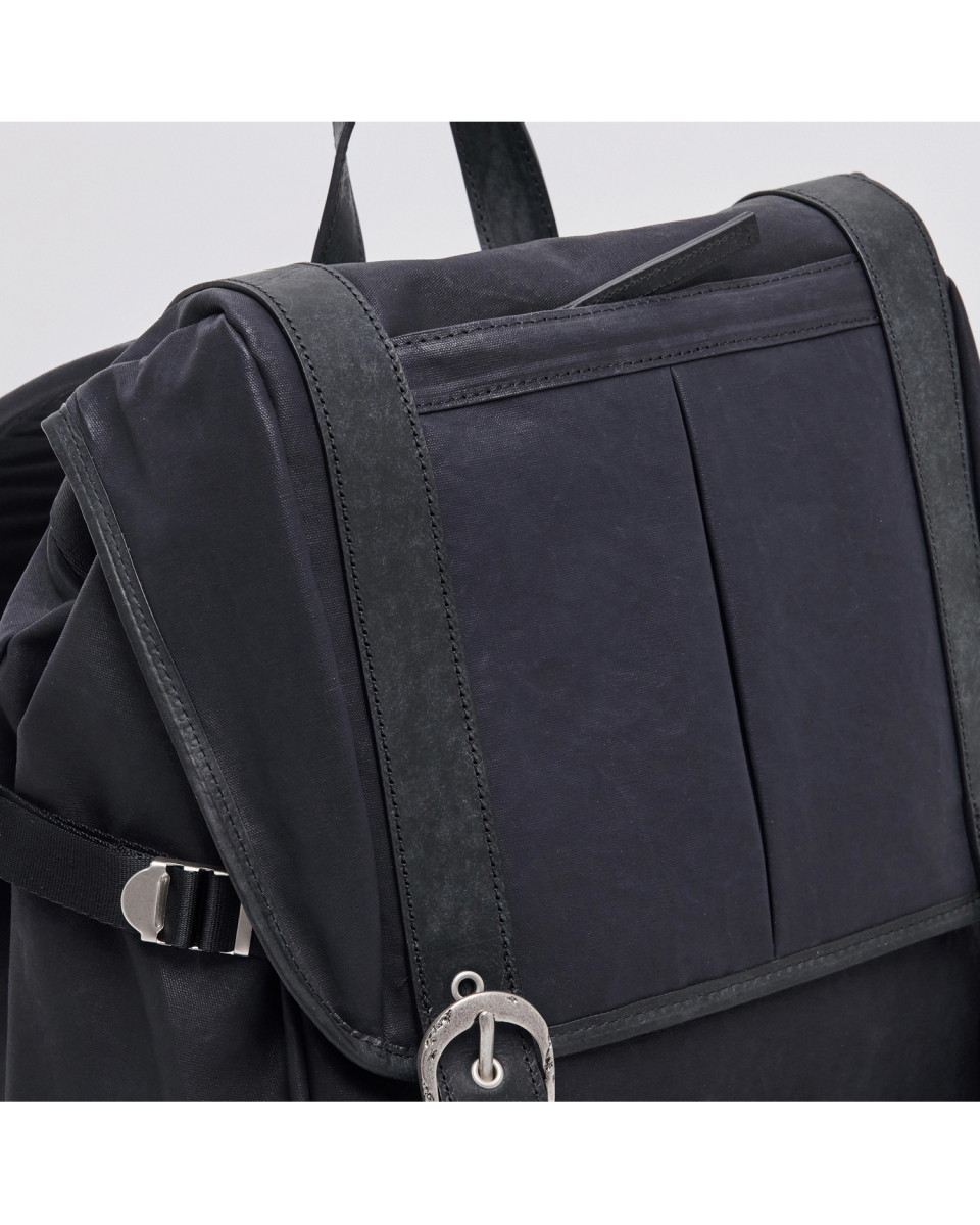 버클드 럭색은 Worthwhile Movement의 밀트레인 럭색을 기반으로, POG Service와의 협업을 통해 재탄생한 빈티지 무드의 럭색입니다. POG Service가 직접 제작한 데미지 가공된 빈티지 버클 파츠가 적용되어 시각적으로 큰 특징이 되며, 오래된 장비의 거친 감도와 데미지드 질감을 현대적으로 해석해 담아냈습니다. 주 소재는 10수 캔버스 코튼과 이탈리아산 베지터블 태닝 카우하이드입니다. 10수의 캔버스 코튼은 탄탄하면서도 바이오 워싱과 폼 카본 워싱 공정을 거쳐 유연하고 부드러운 촉감을 지녔고, 옅은 광택감이 매력적입니다. 고온 카본 워싱은 은은한 톤 변화와 입체감을, 바이오 워싱은 천연 효소 처리로 부드러운 표면을 완성합니다. 또한 가죽은 시간이 지날수록 짙은 색감과 깊은 윤기를 더하며 에이징의 매력을 드러냅니다. 특히 가죽에는 구슬 스크래치(Bead Scratch) 가공을 더해, 마치 오랜 시간 손끝에 닳은 듯한 리얼 빈티지 질감을 표현했습니다. PU 코팅과 발수 코팅으로 생활 발수가 가능하며, 내구성과 형태 안정성을 위해 적절한 보강재를 삽입했습니다. 사용된 하드웨어는 POG 서비스 자체 버클과 YKK Fastener & Snap으로 구성되어, 완성도를 높였습니다.