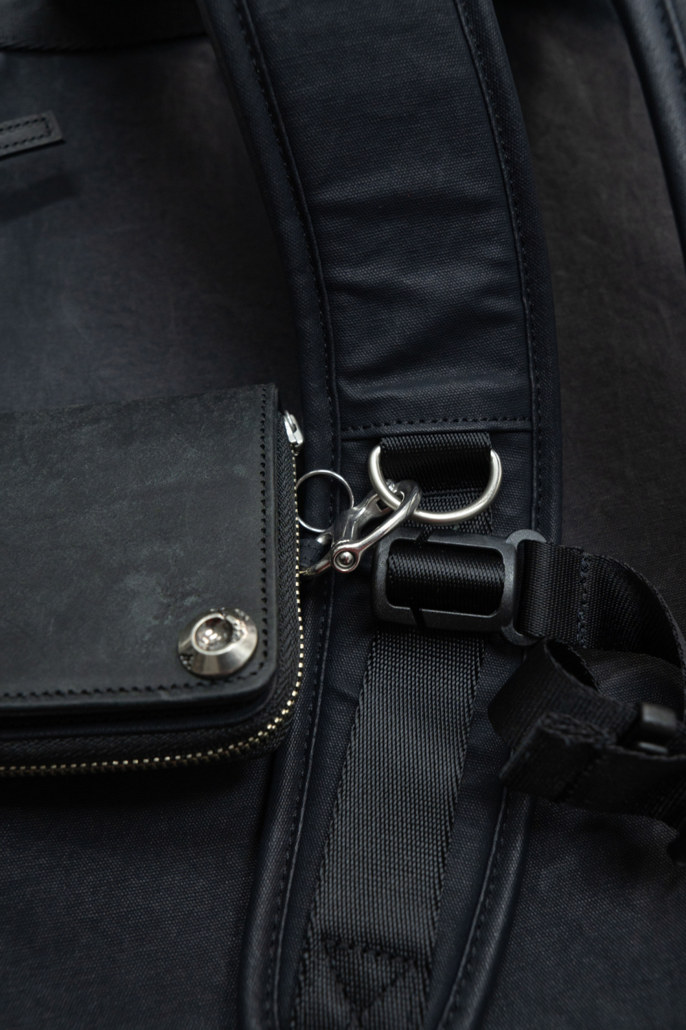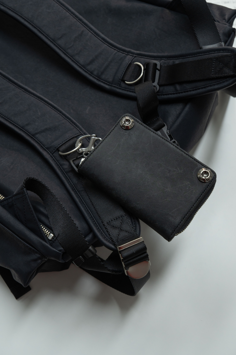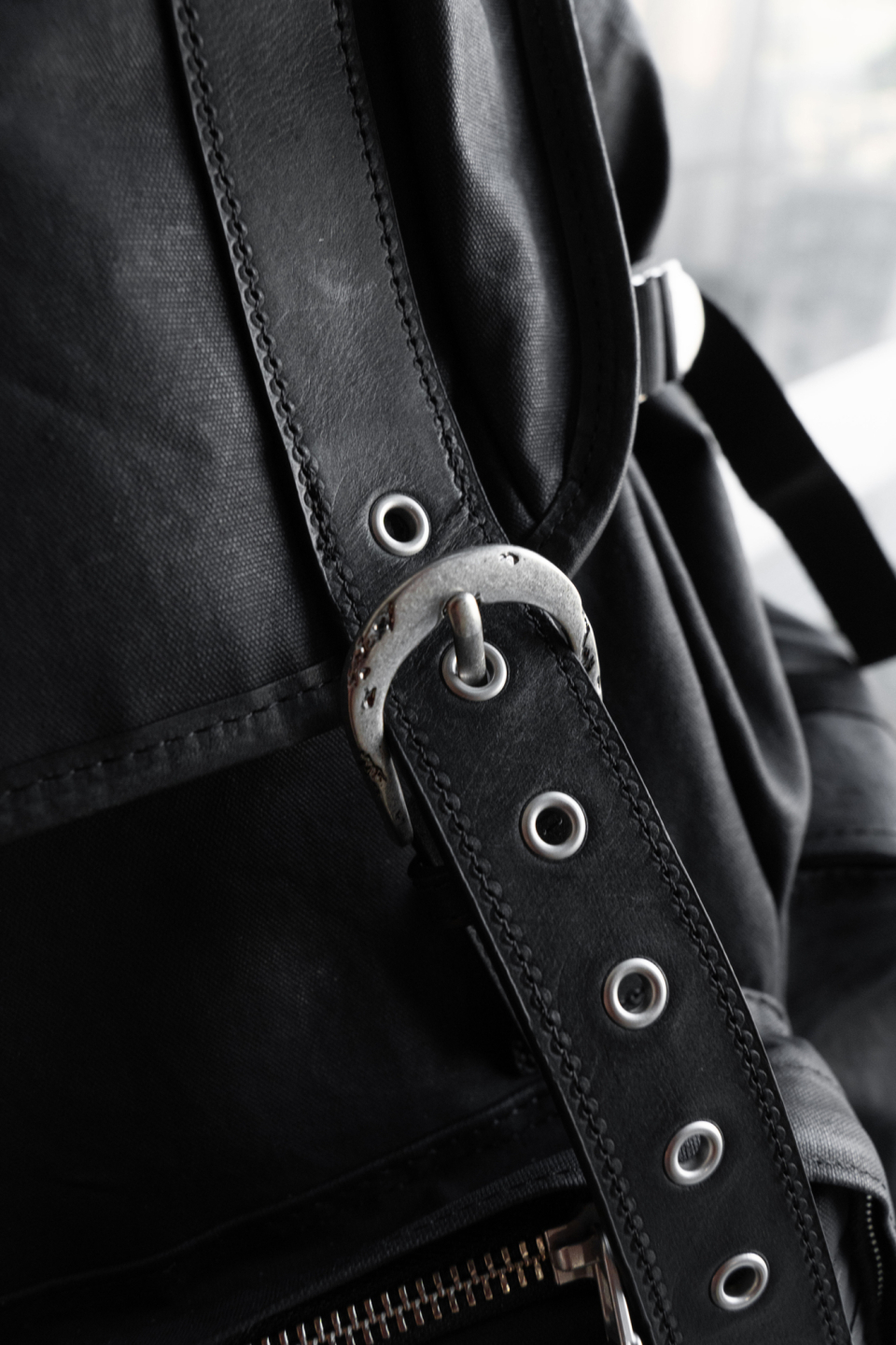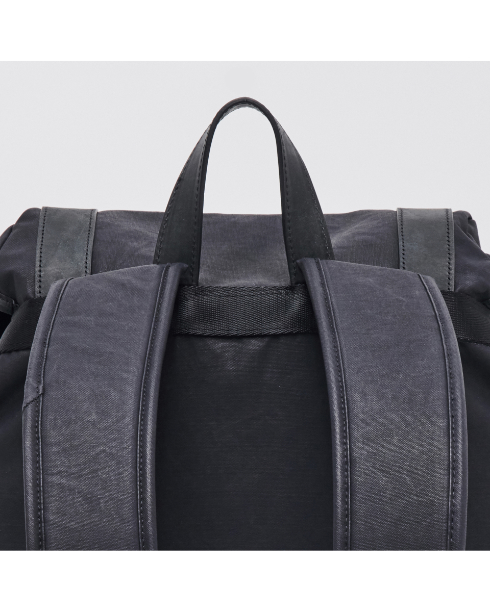버클드 럭색은 Worthwhile Movement의 밀트레인 럭색을 기반으로, POG Service와의 협업을 통해 재탄생한 빈티지 무드의 럭색입니다. POG Service가 직접 제작한 데미지 가공된 빈티지 버클 파츠가 적용되어 시각적으로 큰 특징이 되며, 오래된 장비의 거친 감도와 데미지드 질감을 현대적으로 해석해 담아냈습니다. 주 소재는 10수 캔버스 코튼과 이탈리아산 베지터블 태닝 카우하이드입니다. 10수의 캔버스 코튼은 탄탄하면서도 바이오 워싱과 폼 카본 워싱 공정을 거쳐 유연하고 부드러운 촉감을 지녔고, 옅은 광택감이 매력적입니다. 고온 카본 워싱은 은은한 톤 변화와 입체감을, 바이오 워싱은 천연 효소 처리로 부드러운 표면을 완성합니다. 또한 가죽은 시간이 지날수록 짙은 색감과 깊은 윤기를 더하며 에이징의 매력을 드러냅니다. 특히 가죽에는 구슬 스크래치(Bead Scratch) 가공을 더해, 마치 오랜 시간 손끝에 닳은 듯한 리얼 빈티지 질감을 표현했습니다. PU 코팅과 발수 코팅으로 생활 발수가 가능하며, 내구성과 형태 안정성을 위해 적절한 보강재를 삽입했습니다. 사용된 하드웨어는 POG 서비스 자체 버클과 YKK Fastener & Snap으로 구성되어, 완성도를 높였습니다.