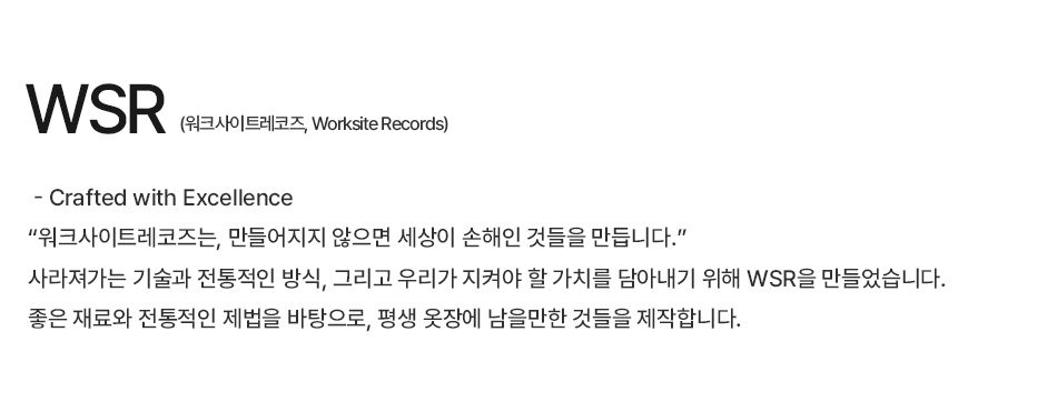 또한, 텀블 다잉 공정을 추가로 거친 제품으로, 이 과정에서 개체별로 고유한 워싱감과 스크래치가 발생할 수 있습니다. 이는 공정상 자연스럽게 나타나는 특징으로, 제품의 고유한 개성을 더해주는 요소임을 안내드립니다.