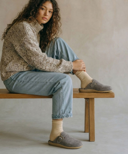 스웨이드 슬리퍼 클로그 클래식 남자 여성 뮬 슬리퍼 그레이 PTCLOG001M-GYS