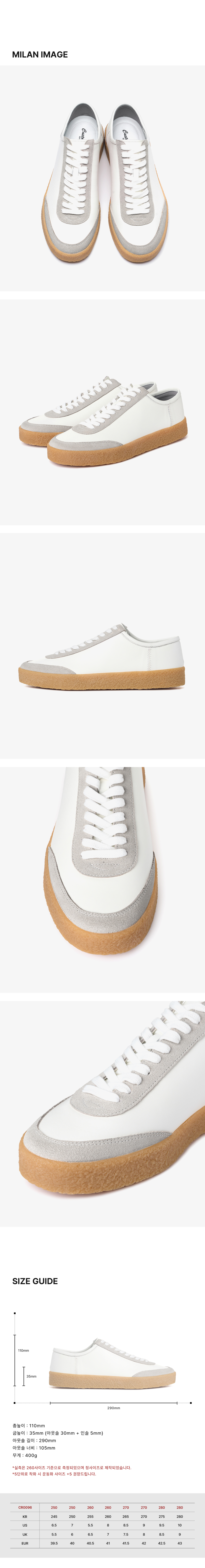 밀란 소가죽 코트 스니커즈 3.5cm (CR0096WH)