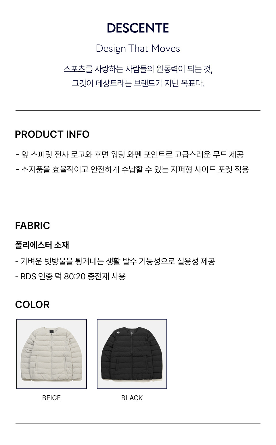 | 소재 | [BEG0]겉감:폴리에스터(100),[BEG0]안감:나일론(100),[BEG0]충전재:오리솜털(80)오리깃털(20),[BLK0]겉감:폴리에스터(100),[BLK0]안감:나일론(100),[BLK0]충전재:오리솜털(80)오리깃털(20) (입고 시기에 따라 정보가 상이할 수 있어, 수령하신 상품의 라벨을 참고하시기 바랍니다.) |
