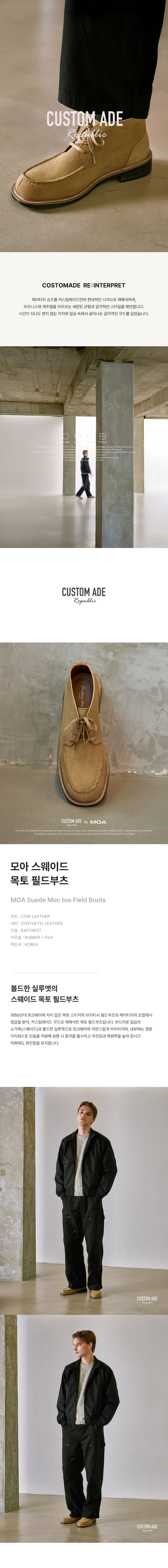 커스텀에이드(CUSTOMADE)는 비즈니스와 캐주얼을 아우르는 베이식한 디자인과 편안한 착화감을 기반으로, 실용적이면서도 높은 품질의 슈즈를 제시합니다. 어떤 룩에도 자연스럽게 어우러지고, 오래도록 함께할 수 있는 가치를 추구하는 브랜드입니다.
