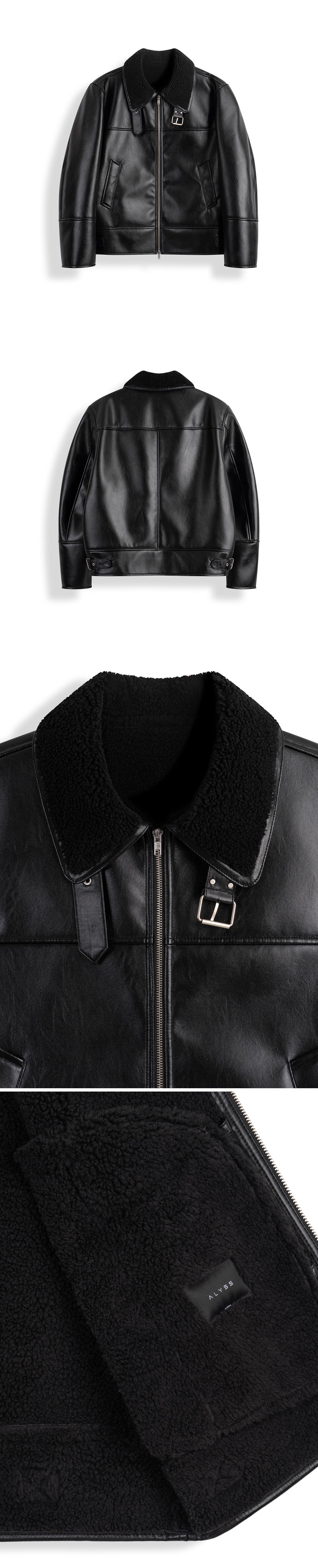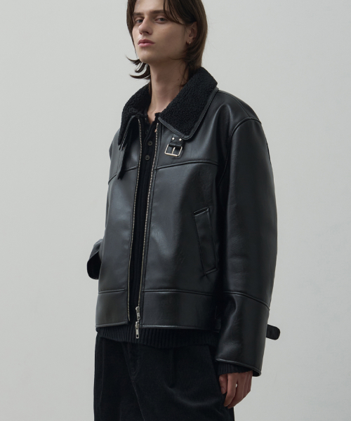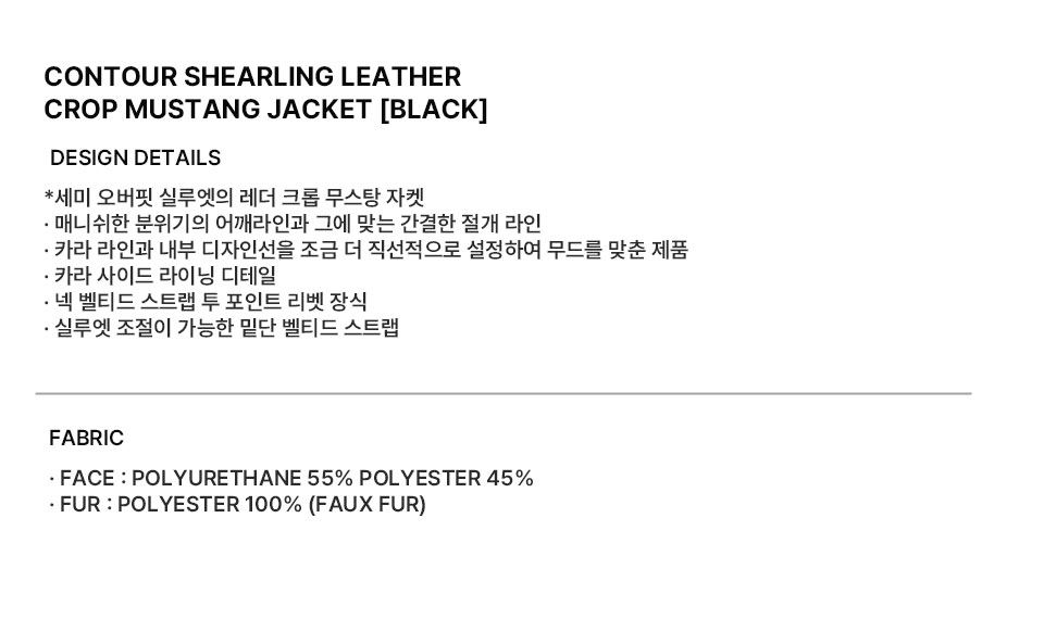 컨투어 시어링 레더 크롭 무스탕 자켓 [블랙]