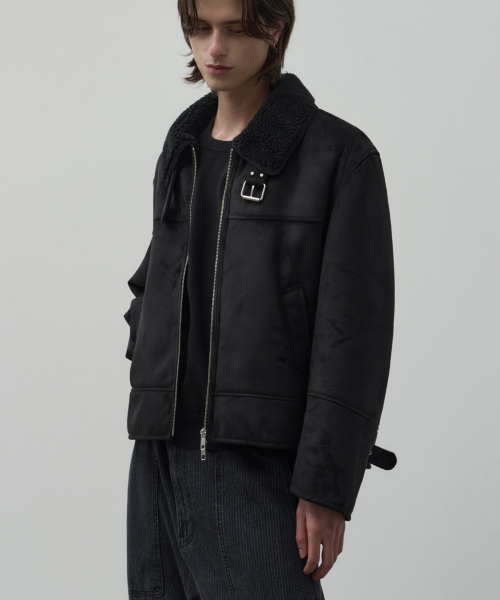 컨투어 시어링 스웨이드 크롭 무스탕 자켓 [블랙]