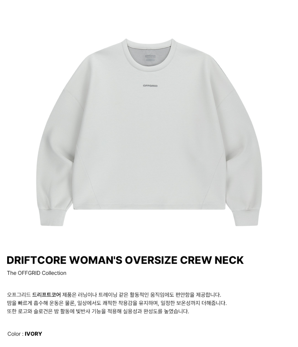 드리프트코어 우먼스 오버사이즈 크루 넥-아이보리