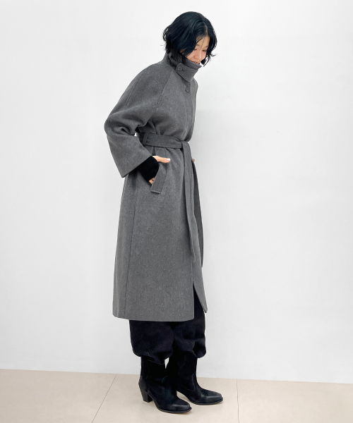 [우먼] 벨티드 발마칸 롱 코트 다크그레이 COWCT001DGRAY