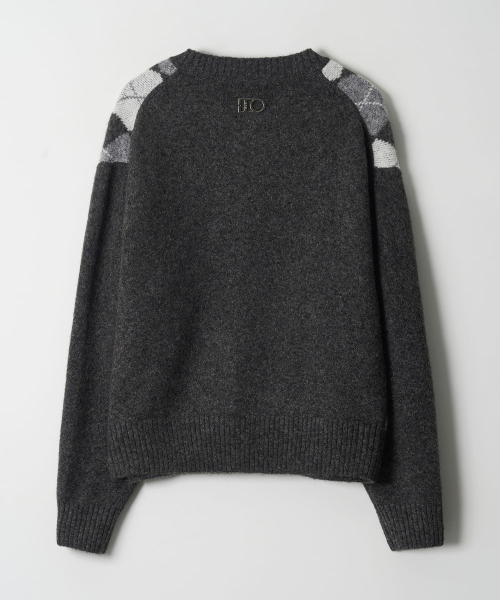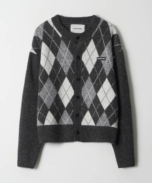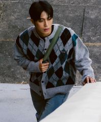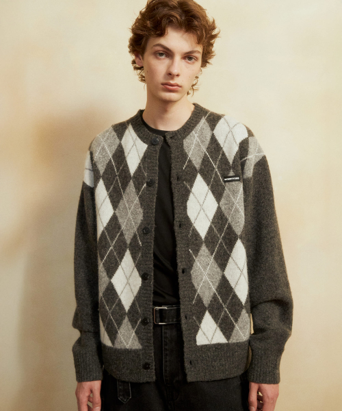 Round-Neck Argyle Cardigan (GREY)