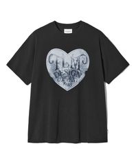 FLM 빈티지 하트 그래픽 티셔츠-블랙