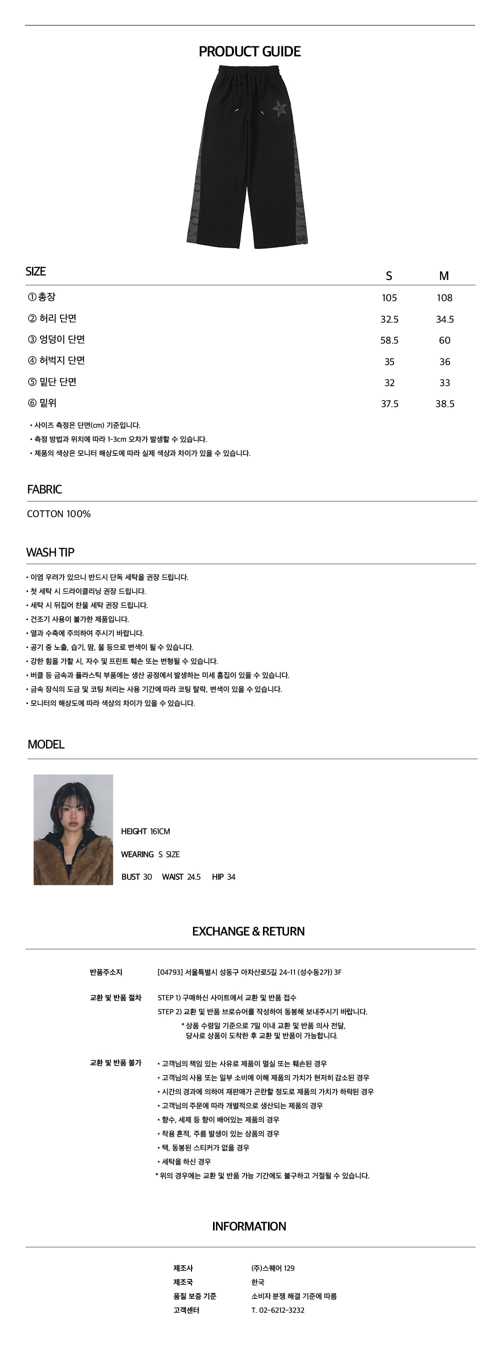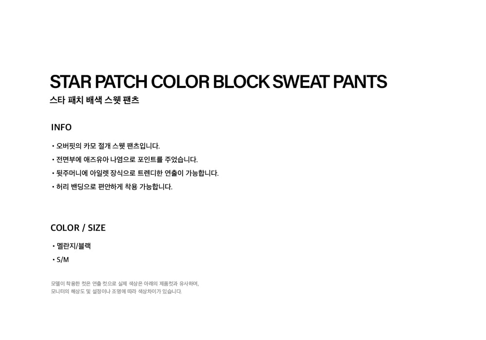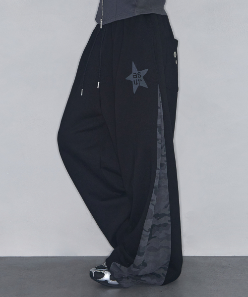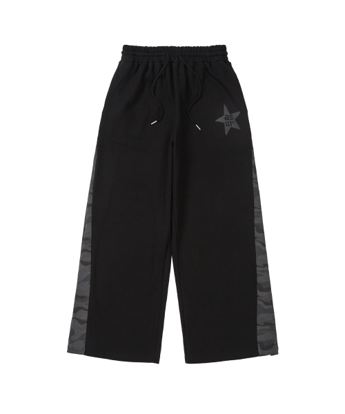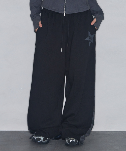 스타 패치 배색 스웻 팬츠 블랙