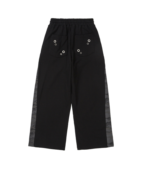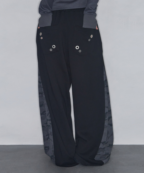 아일렛 포인트 트렁크 레이어드 새깅 와이드 히든 스트링 팬츠 [블랙]
