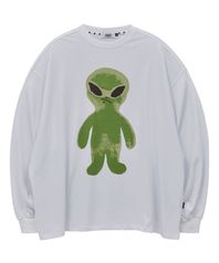 에일리언 그래픽 오버핏 롱슬리브 티셔츠 화이트