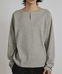 WAFFLE RAW CUT HENLEY NECK LONG SLEEVES (MELANGE GRAY)
