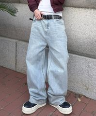에센셜 캣워싱 와이드 데님 팬츠 [연청]