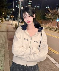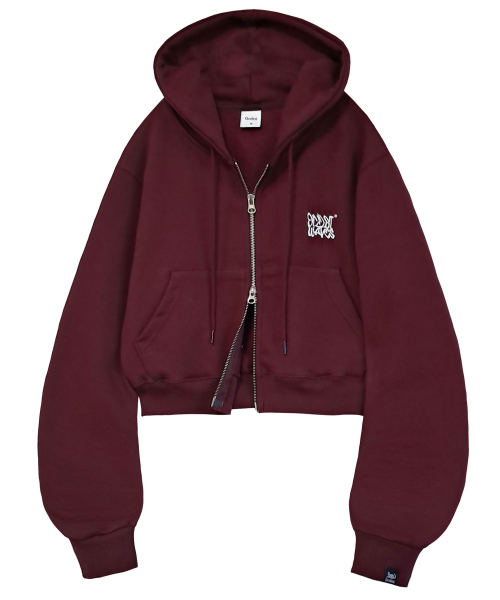 D12 에센셜 웨이브 로고 크롭 후드집업 와인