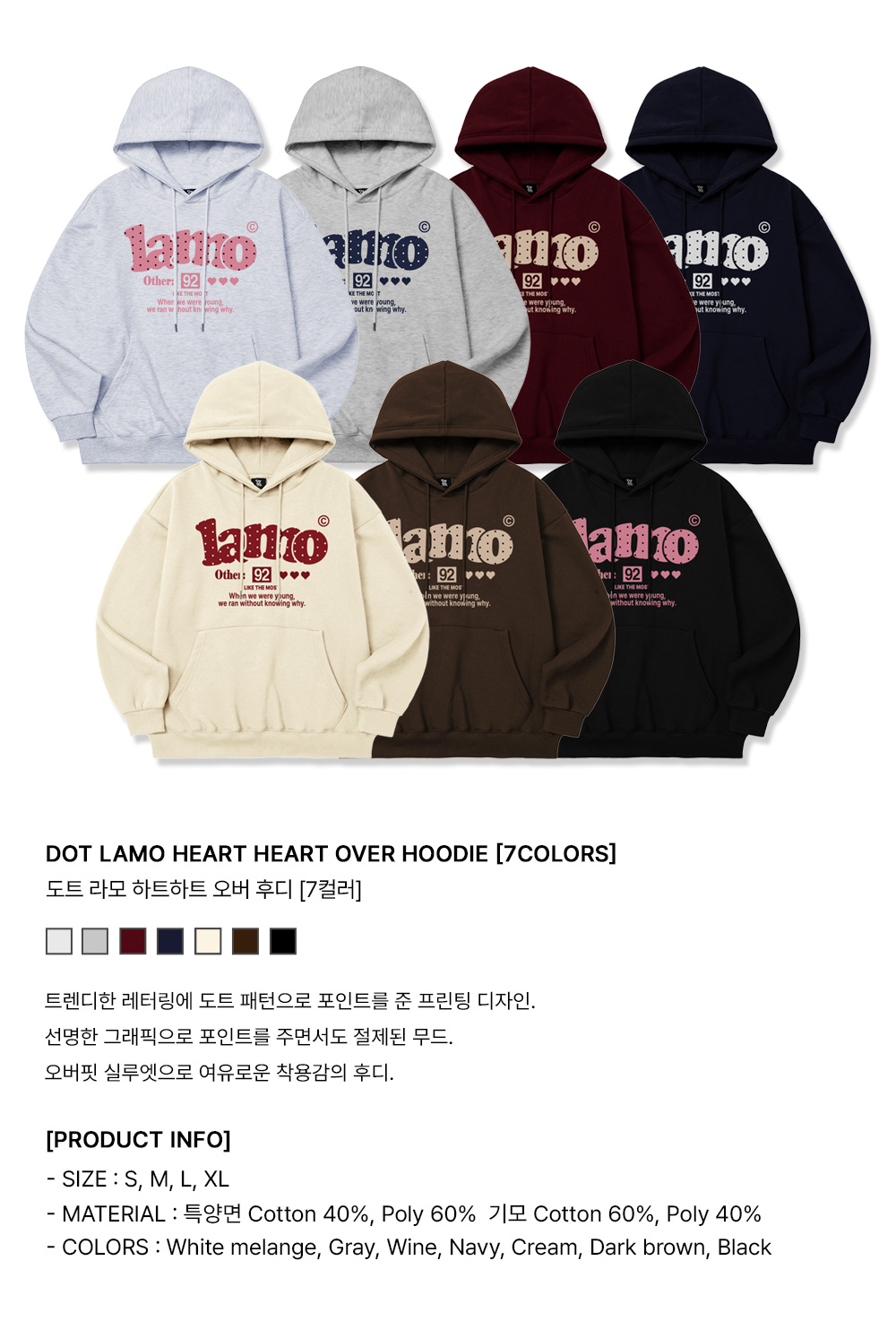 [기모추가 ] 도트라모 하트하트 후디_7colors