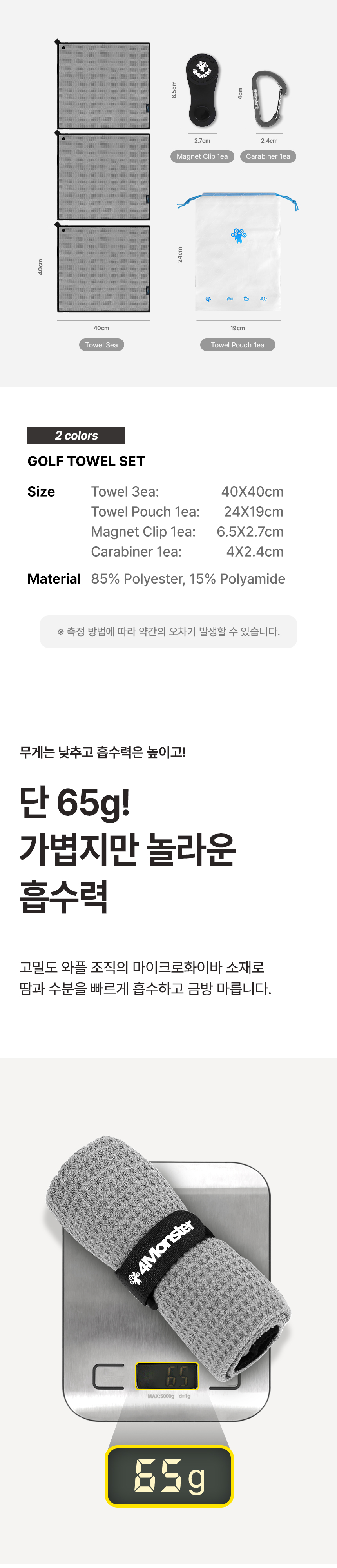 [3PACK] 골프 타월 - 그레이