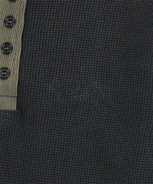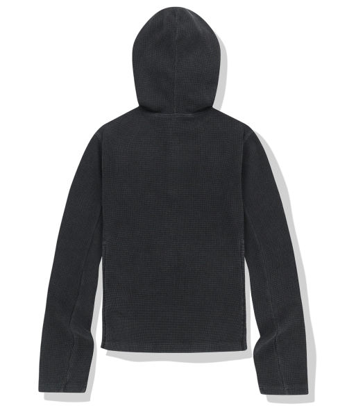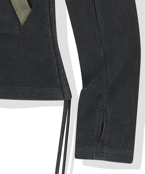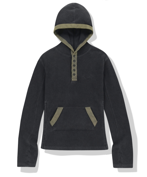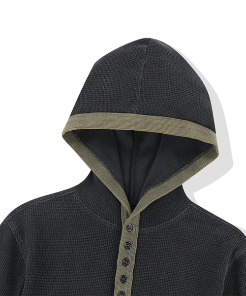 W 444 Logo Waffle Henley Neck Hood - Charcoal