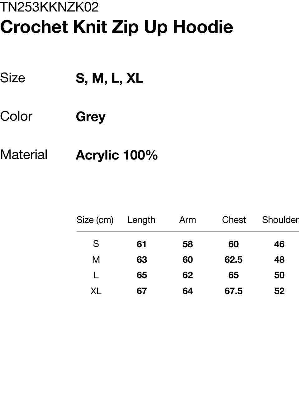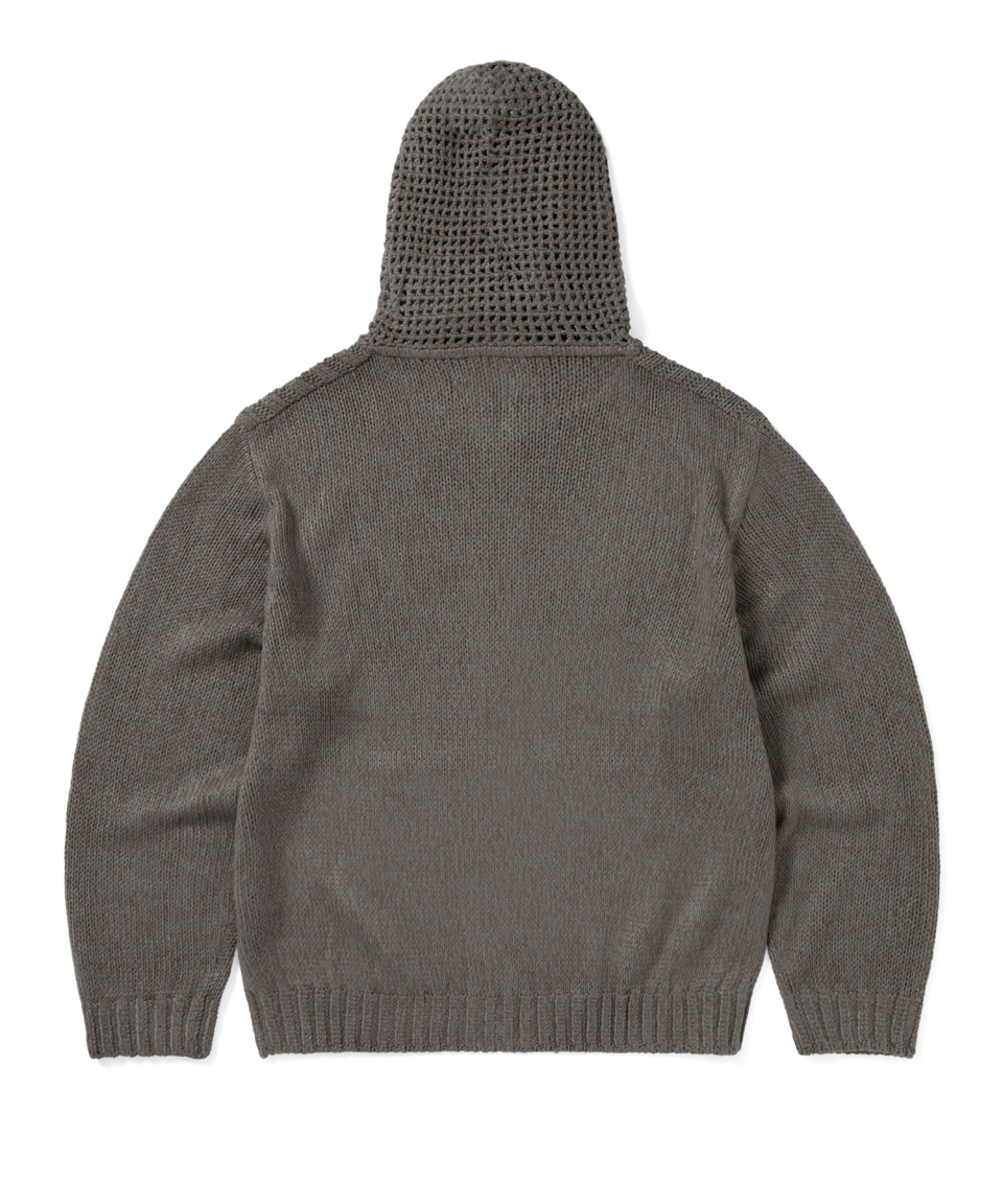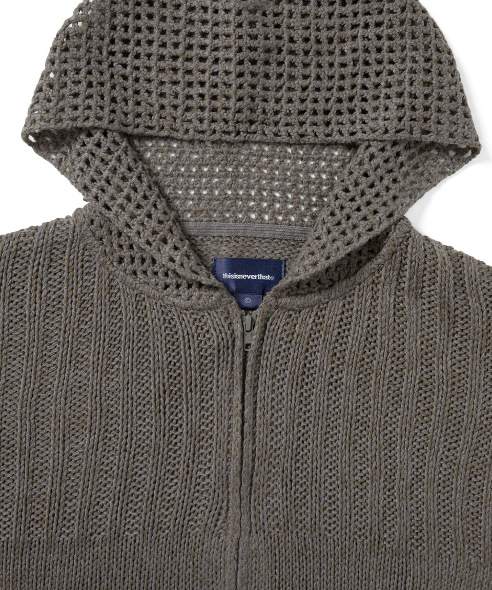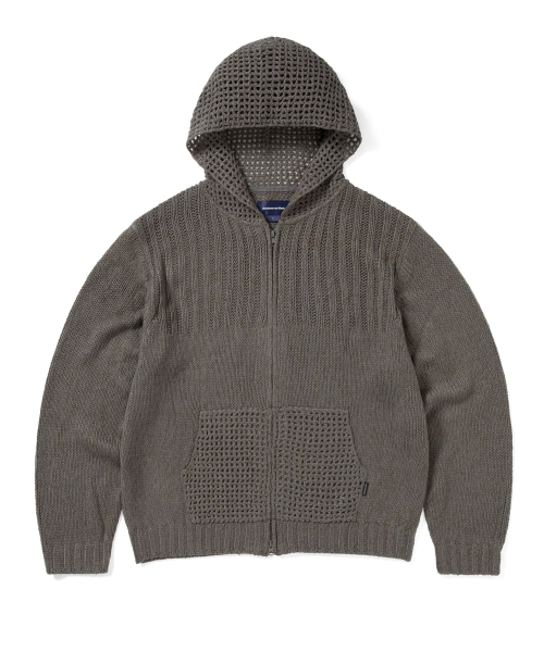 Crochet Knit Zip Up Hoodie Grey