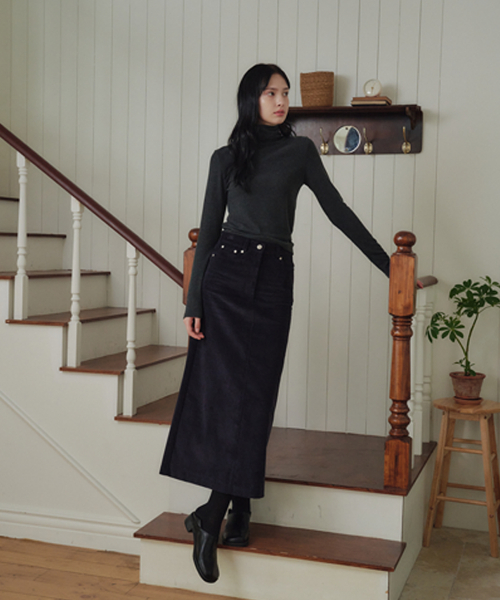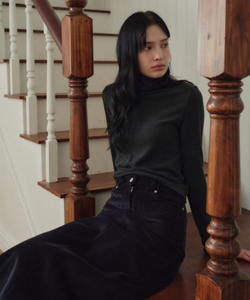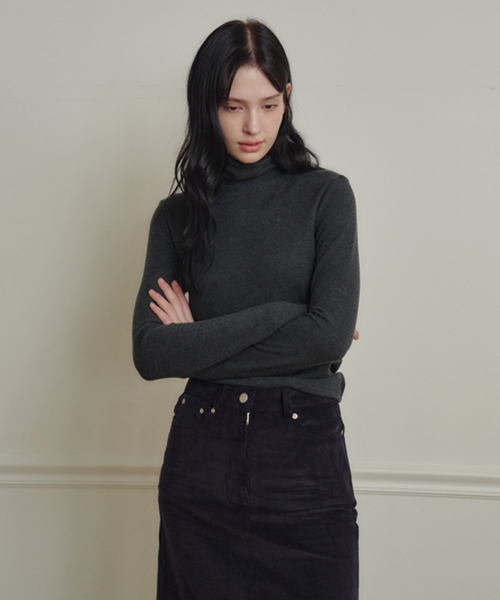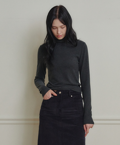 브러쉬드 터틀넥 티_차콜